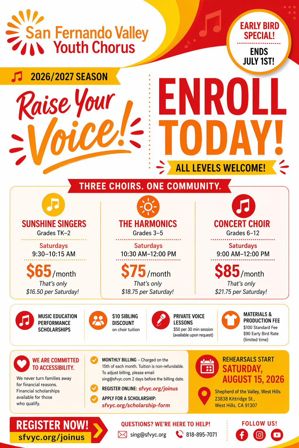 Under the guidance of our passionate team of musical instructors, these rising stars will be ready to inspire audiences, celebrate music, and build community, all while sharing their joy for singing.